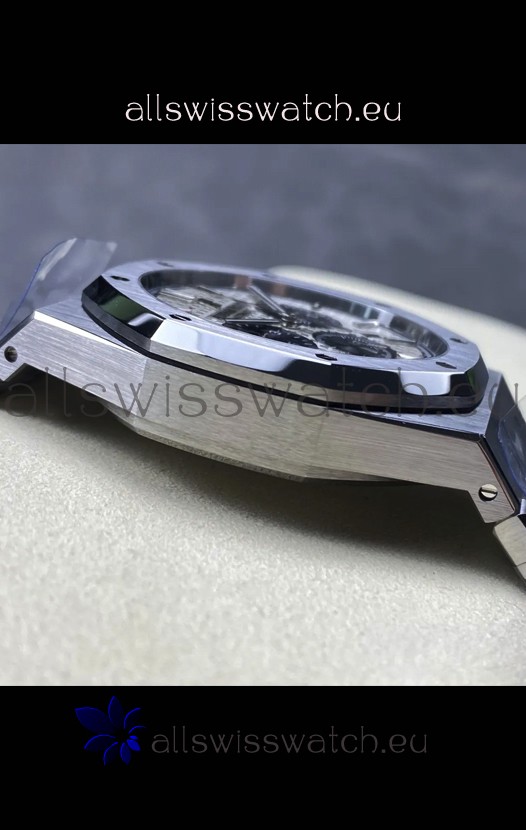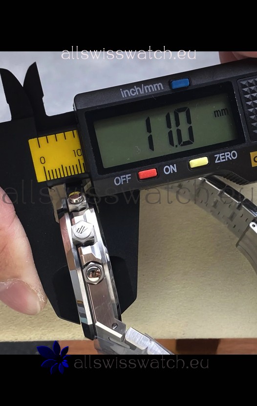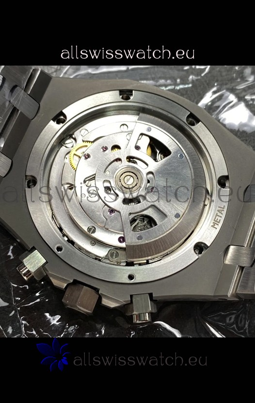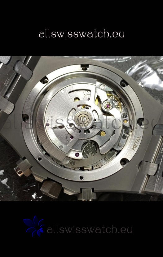 Machinery Layout exactly like Audemars Piguet 3126 Calibre Movement used in Authentic Audemars Piguet Offshore Watches. Built on Genuine Swiss 7753 Movement architecture with Functional stopwatch feature like the authentic with Seconds hand running at the 12 o clock Sub Dial
