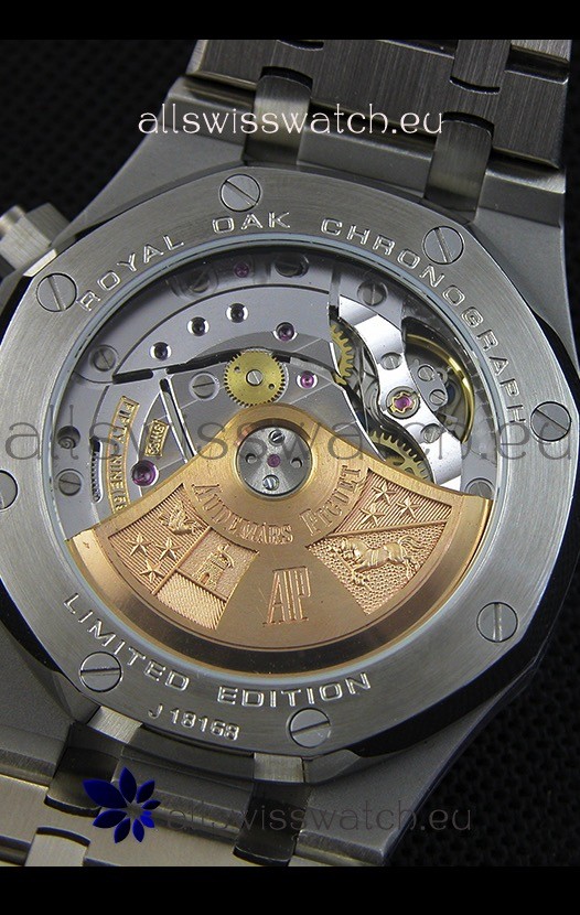 Genuine Swiss 7750 Movement re-aligned to resemble the 3126 Audemars Piguet Movement with Functional stopwatch feature like the authentic