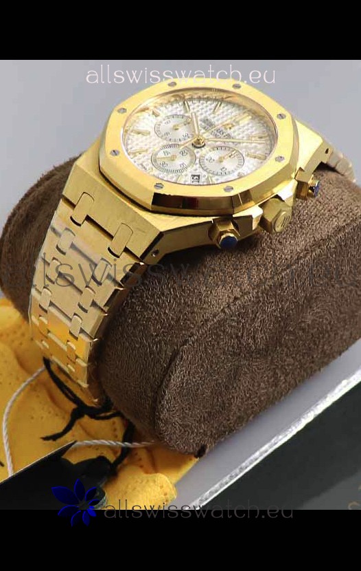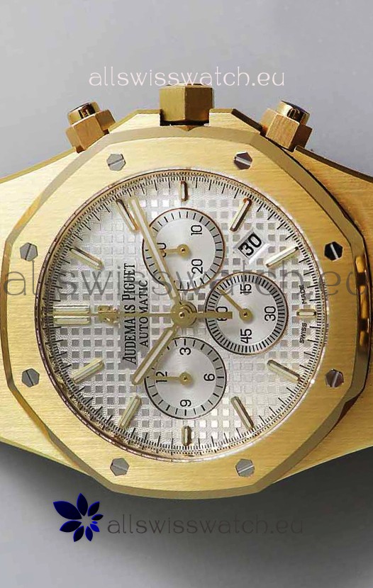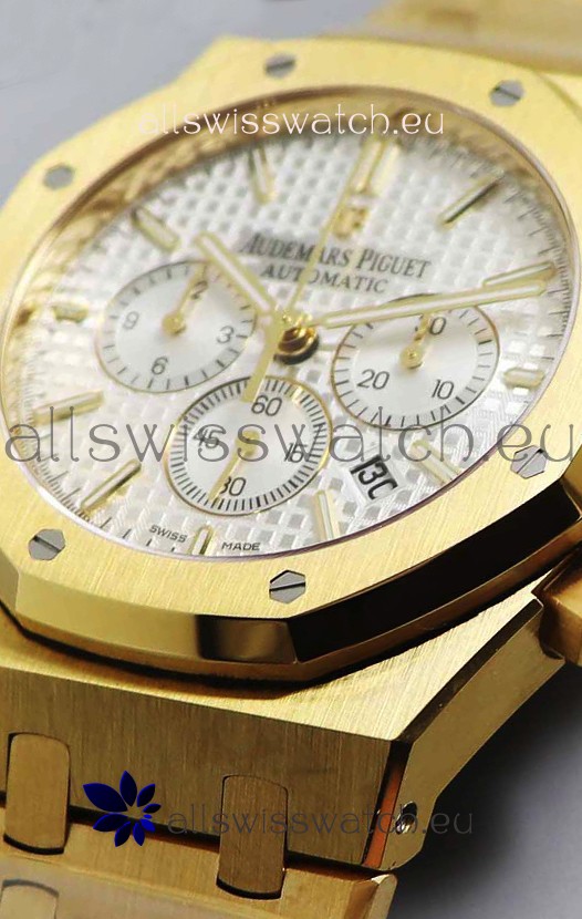 Audemars Piguet Royal Oak Chronograph Yellow Gold White Dial Steel Strap Swiss Replica Watch