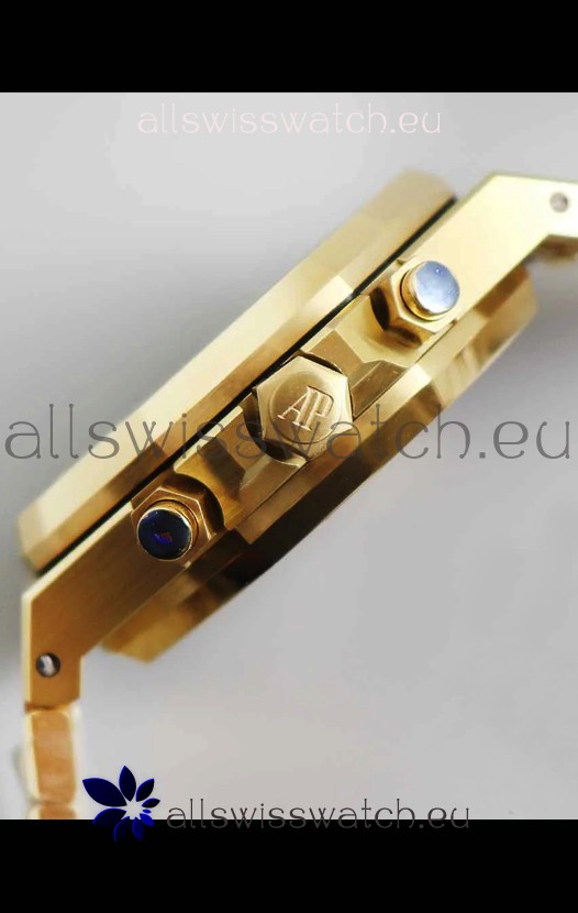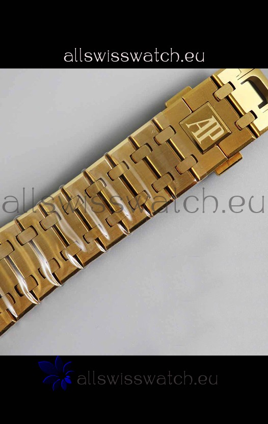 18K Yellow Gold Plating on 904L Stainless Steel Strap completed with AP Markings and Engravings as per the originals and AP Folding Clasp
