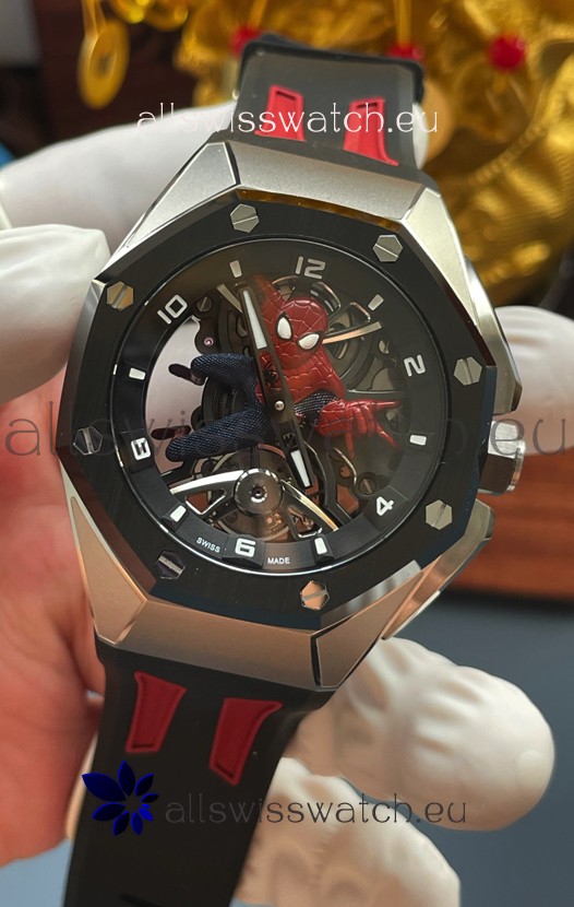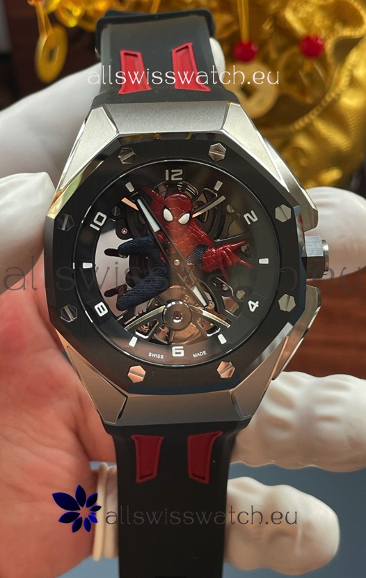 Openworked Dial with Spider-Man Figure. Ceramic Bezel