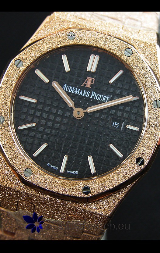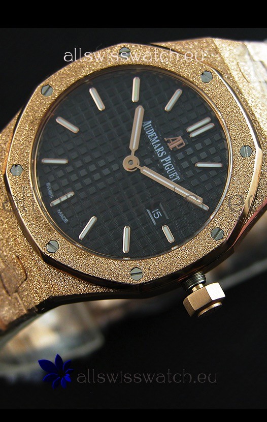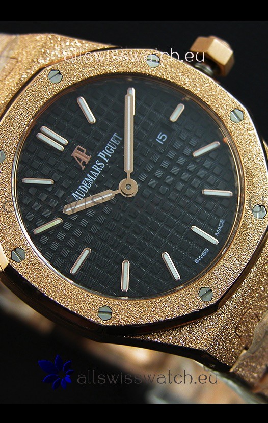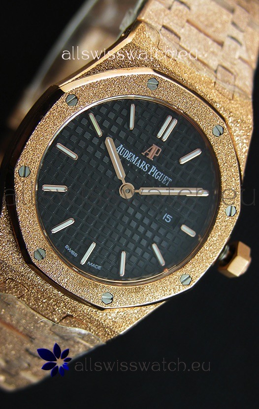 Top Grade Audemars Piguet Royal Oak Frosted Rose Gold QUARTZ Watch Black Dial 33MM - 1:1 Mirror Replica with Free Shipping and 1 year warranty