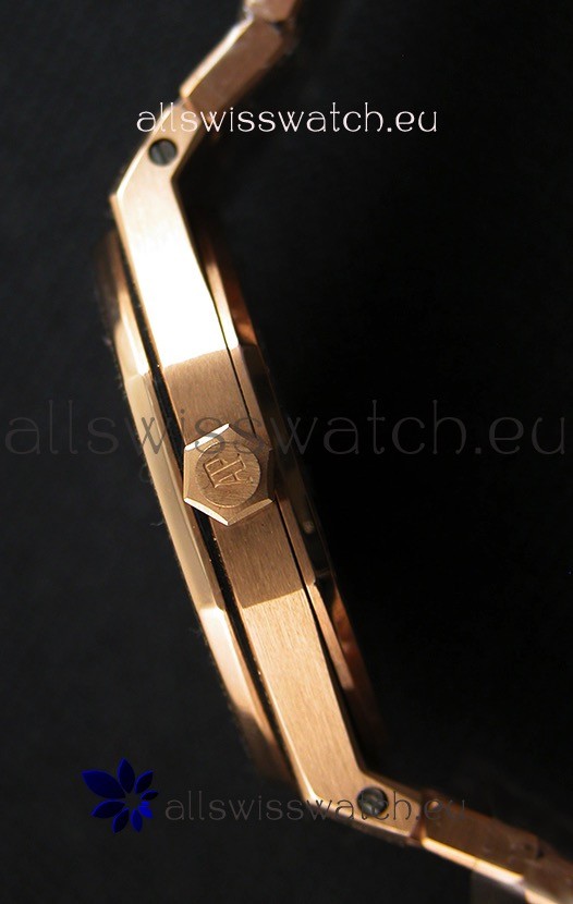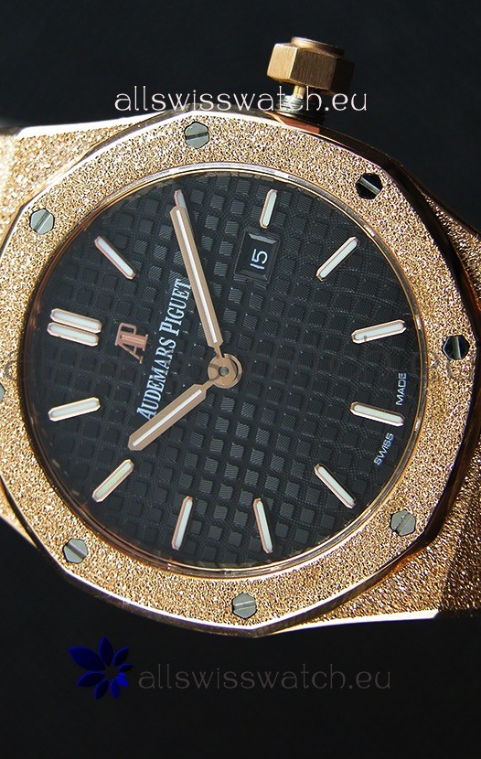 316L Rose Gold Brushed Frosted Steel casing with Audemars Piguet Markings and Engravings