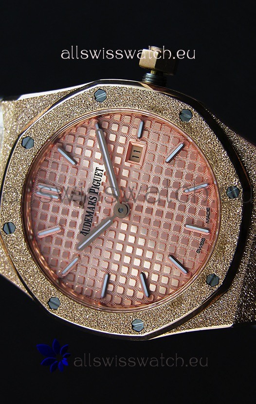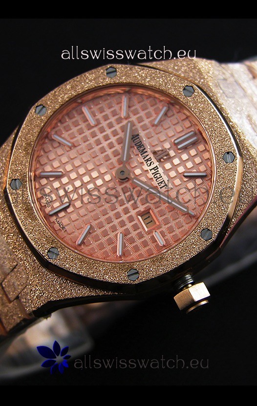 You're reviewing: Audemars Piguet Royal Oak Frosted Rose Gold QUARTZ Watch Champange Dial 33MM - 1:1 Mirror Replica