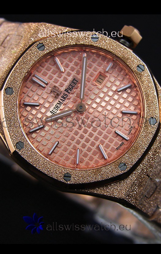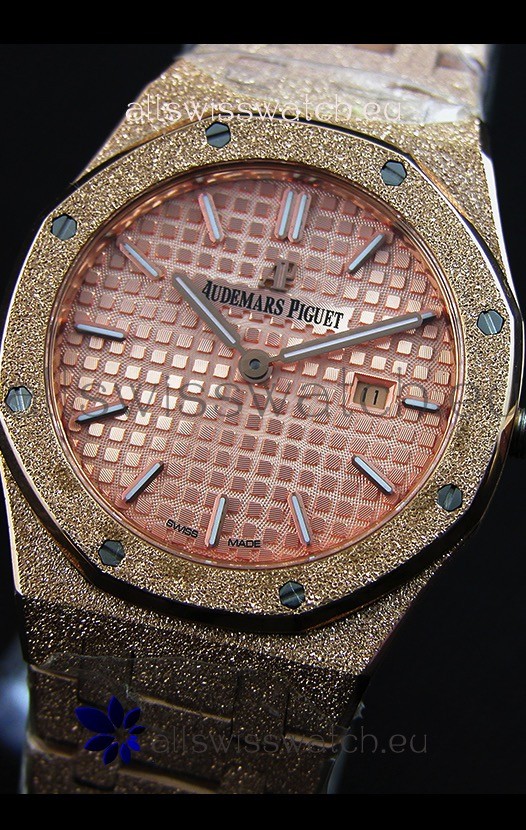 Top Grade Audemars Piguet Royal Oak Frosted Rose Gold QUARTZ Watch Champange Dial 33MM - 1:1 Mirror Replica with Free Shipping and 1 year warranty