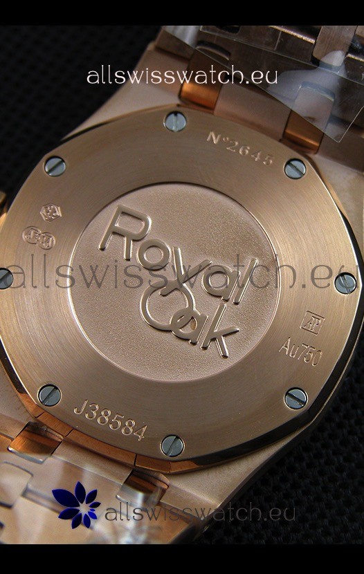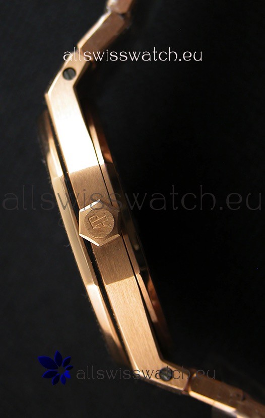 316L Rose Gold Brushed Frosted Steel casing with Audemars Piguet Markings and Engravings