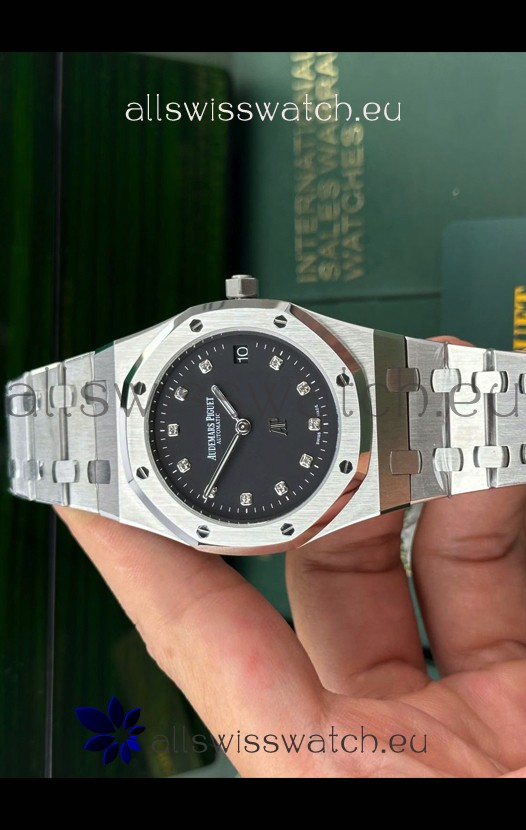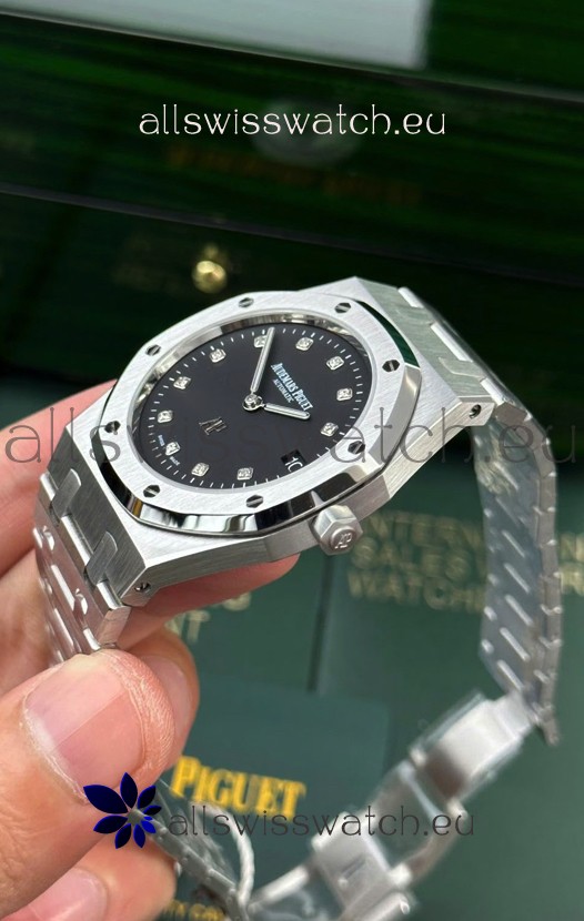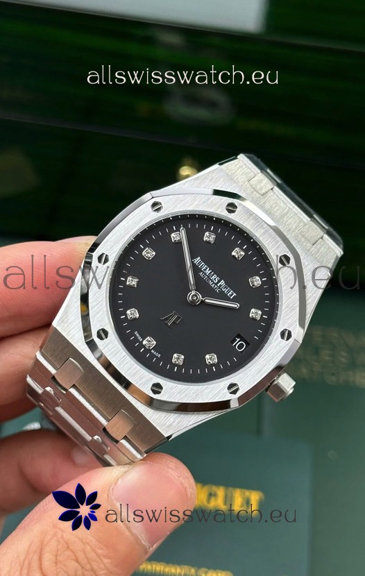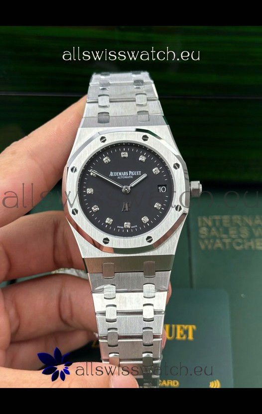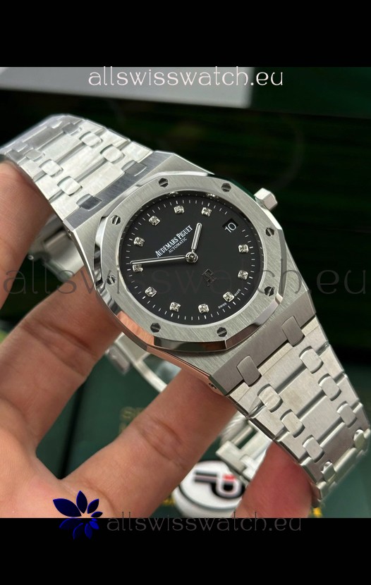 Black Dial with Date Indicator and Diamonds Hour Markers