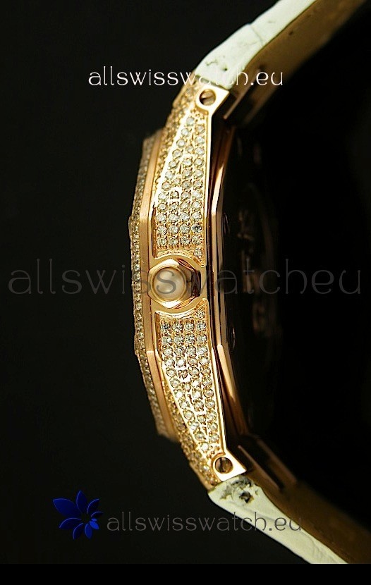 18K Pink Gold Case with Diamonds Bezel and Diamonds Studded Casing