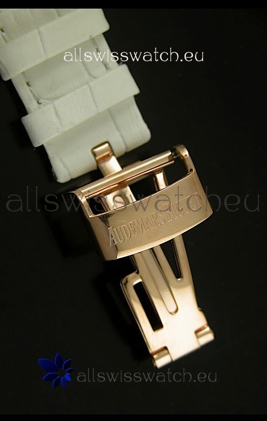 Genuine White Leather Strap with Audemars Piguet Stamped Markings on Strap and Clasp