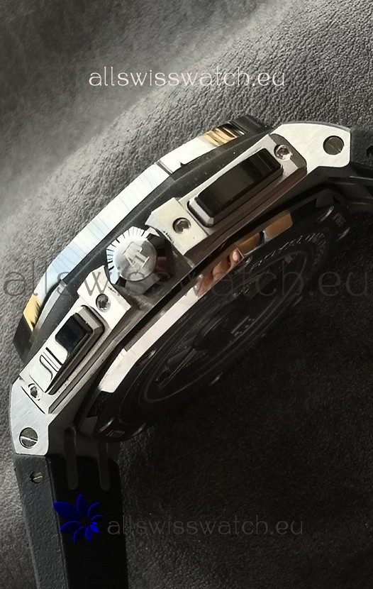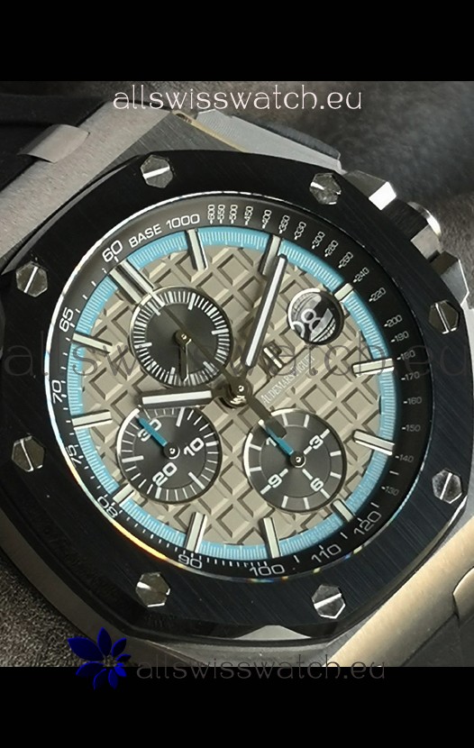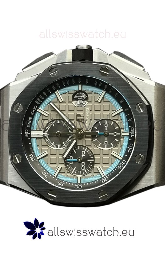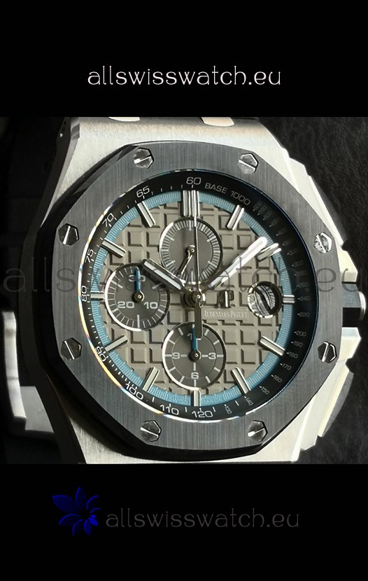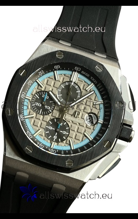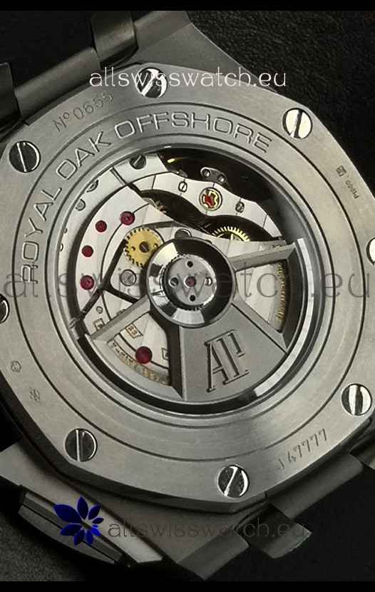 Machinery Layout exactly like Audemars Piguet 3126 Calibre Movement used in Authentic Audemars Piguet Offshore Watches built on Genuine Swiss 7753 Movement architecture with Functional stopwatch feature like the authentic with Seconds hand running at the 12 o clock Sub Dial