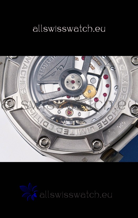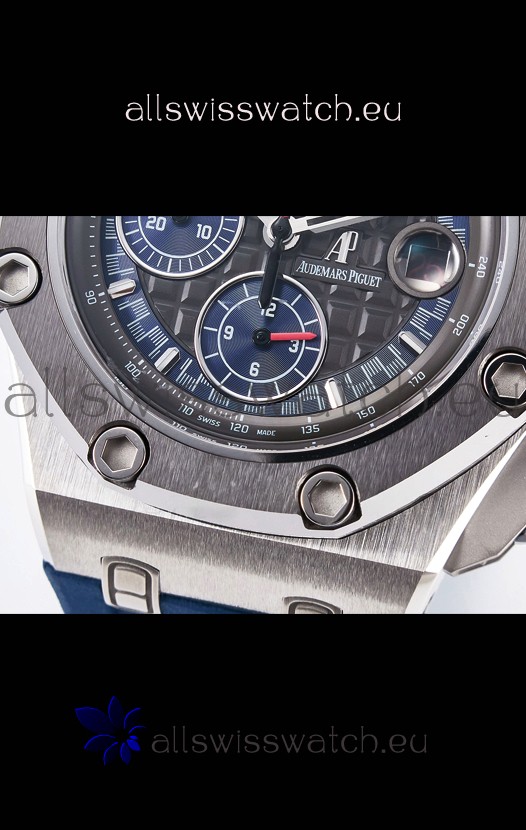 Machinery Layout exactly like Audemars Piguet 3126 Calibre Movement used in Authentic Audemars Piguet Offshore Watches built on Genuine Swiss 7753 Movement architecture with Functional stopwatch feature like the authentic with Seconds hand running at the 12 o clock Sub Dial