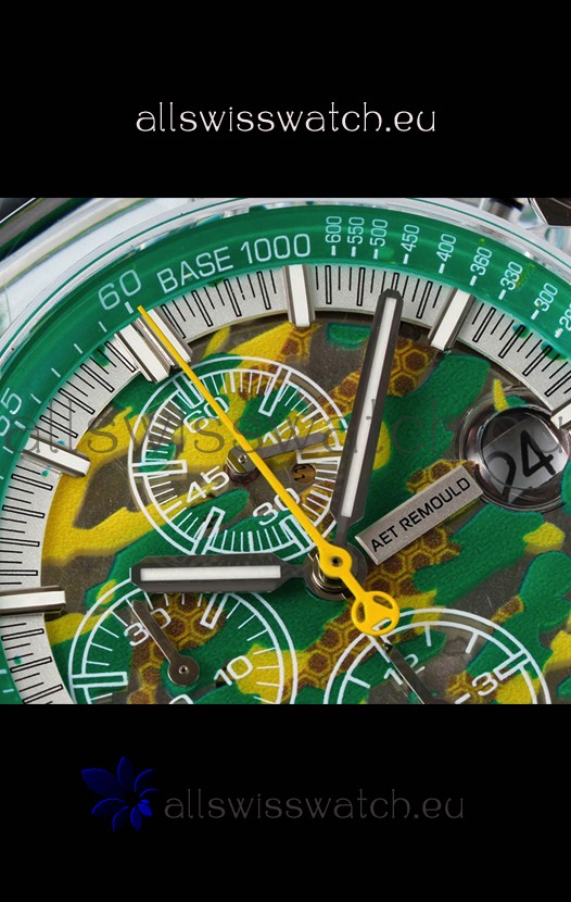 Machinery Layout exactly like Audemars Piguet 3126 Calibre Movement used in Authentic Audemars Piguet Offshore Watches built on Genuine Swiss 7753 Movement architecture with Functional stopwatch feature like the authentic with Seconds hand running at the 12 o clock Sub Dial
