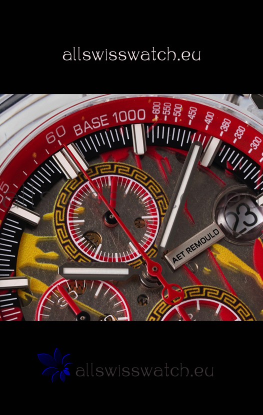 Machinery Layout exactly like Audemars Piguet 3126 Calibre Movement used in Authentic Audemars Piguet Offshore Watches built on Genuine Swiss 7753 Movement architecture with Functional stopwatch feature like the authentic with Seconds hand running at the 12 o clock Sub Dial