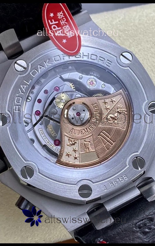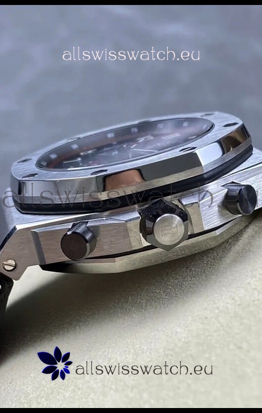 Machinery Layout exactly like Audemars Piguet 3126 Calibre Movement used in Authentic Audemars Piguet Offshore Watches built on Genuine Swiss 7753 Movement architecture with Functional stopwatch feature like the authentic with Seconds hand running at the 12 o clock Sub Dial