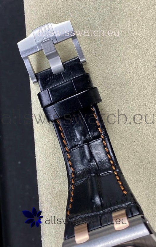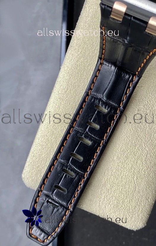 Genuine High Quality Leather Strap with Audemars Piguet Pink Gold Plated Deployment Clasps complete with AP Markings and Engravings like the Originals