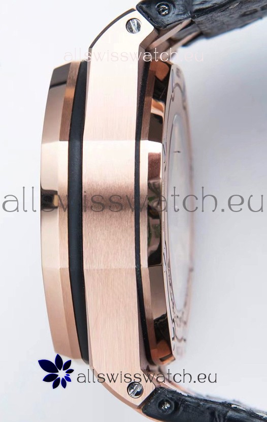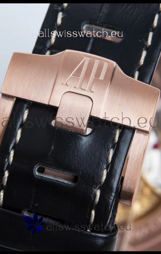 Genuine High Quality Leather Strap with Audemars Piguet Pink Gold Plated Deployment Clasps complete with AP Markings and Engravings like the Originals