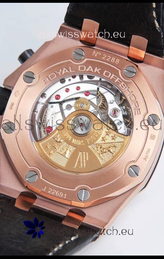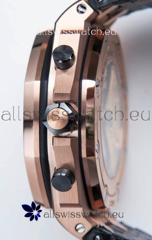 Machinery Layout exactly like Audemars Piguet 3126 Calibre Movement used in Authentic Audemars Piguet Offshore Watches built on Genuine Swiss 7753 Movement architecture with Functional stopwatch feature like the authentic with Seconds hand running at the 12 o clock Sub Dial