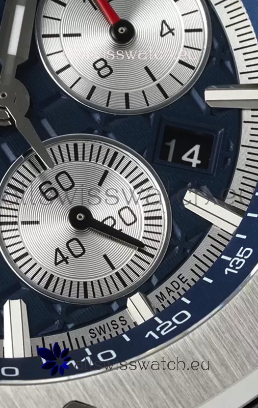 Machinery Layout exactly like Audemars Piguet 3126 Calibre Movement used in Authentic Audemars Piguet Offshore Watches built on Genuine Swiss 7753 Movement architecture with Functional stopwatch feature like the authentic