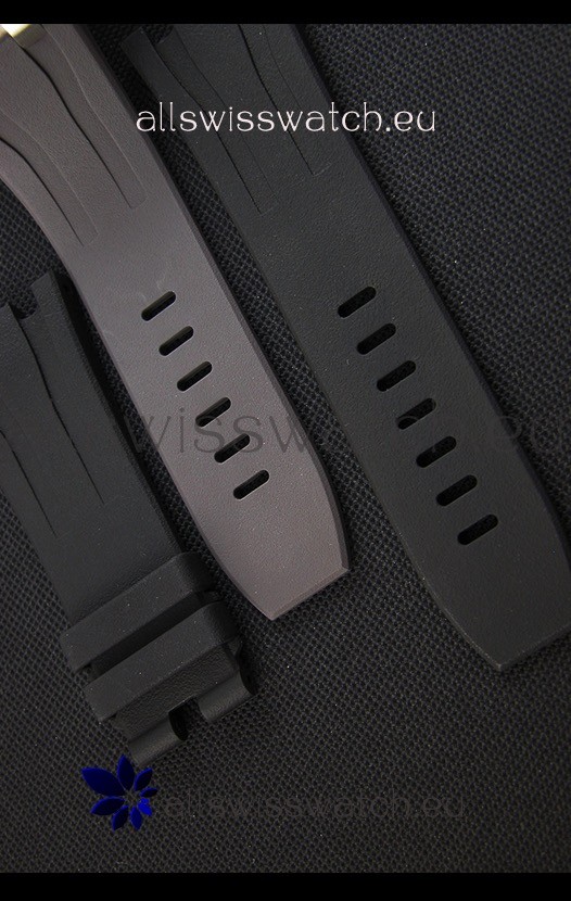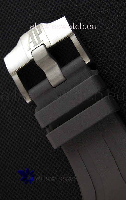 Black Rubber Strap with Steel Tang Buckle complete with Audemars Piguet Markings and Engravings.