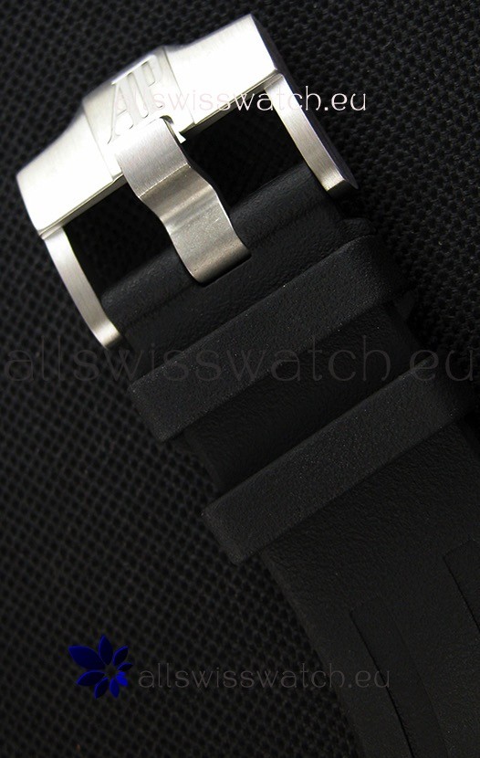 Black Rubber Strap with Steel Tang Buckle complete with Audemars Piguet Markings and Engravings.