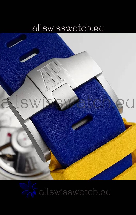 Genuine High Quality Rubber Strap in Dual Colors with Audemars Piguet Tang Buckle Complete with all AP Markings and Engravings