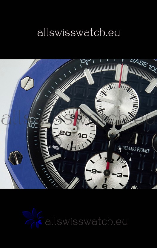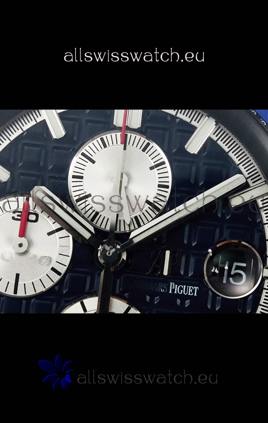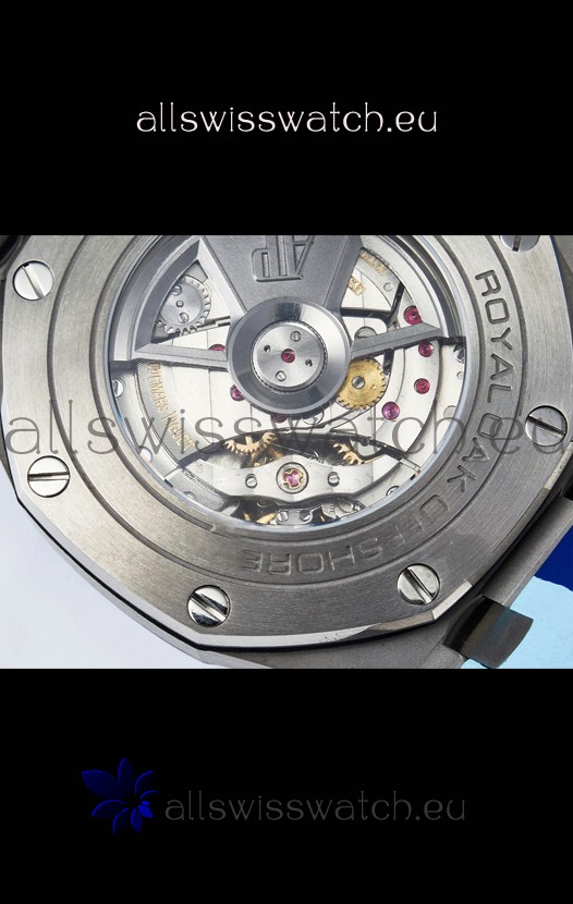 Machinery Layout exactly like Audemars Piguet 3126 Calibre Movement used in Authentic Audemars Piguet Offshore Watches built on Genuine Swiss 7753 Movement architecture with Functional stopwatch feature like the authentic with Seconds hand running at the 12 o clock Sub Dial