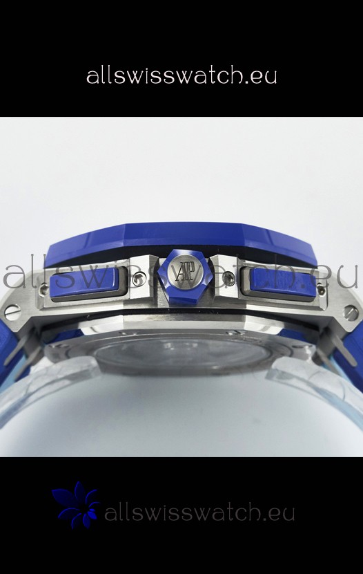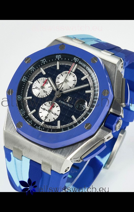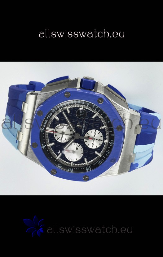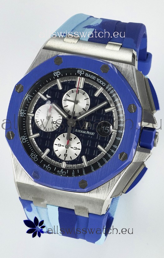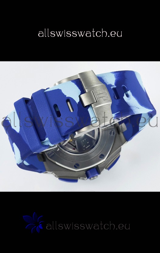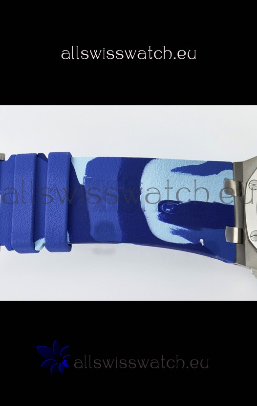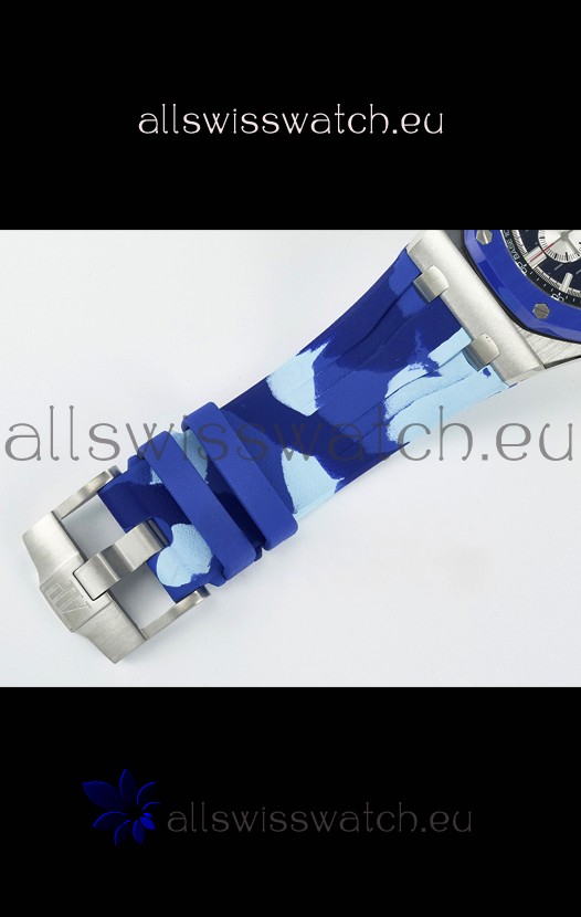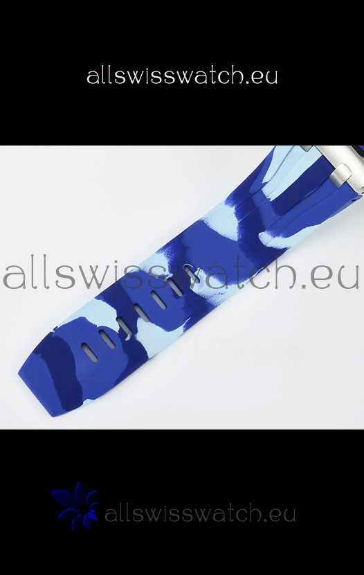 Genuine High Quality Blue CAMO Rubber Strap with Audemars Piguet Tang Buckle Complete with all AP Markings and Engravings