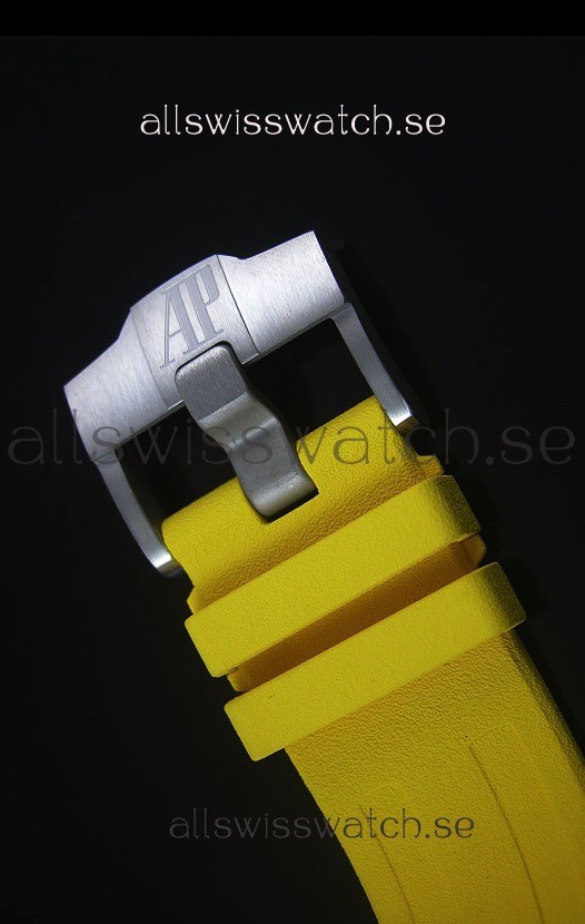 Genuine Dust Repellent Yellow Divers Rubber Strap with Brushed Steel Tang Buckle