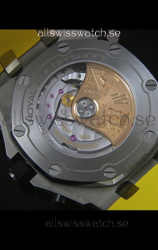 Machinery Layout exactly like Audemars Piguet 3126 Calibre Movement used in Authentic Audemars Piguet Offshore Watches built on Genuine Swiss 7753 Movement architecture with Functional stopwatch feature like the authentic.