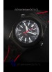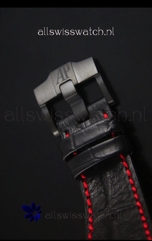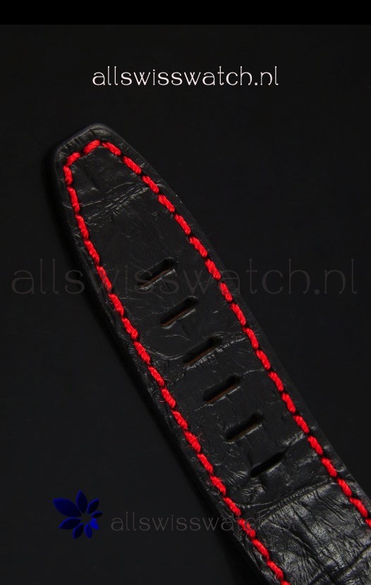 Genuine Black Leather Strap with Red Stitches with PVD Coated Tang Buckle