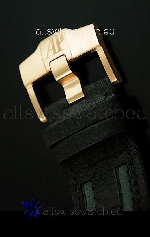 Genuine Black Racing Style Leather Strap with Brushed Buckle like the Authentic AP Watches