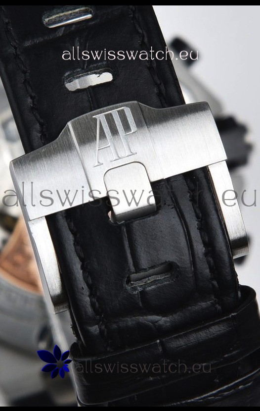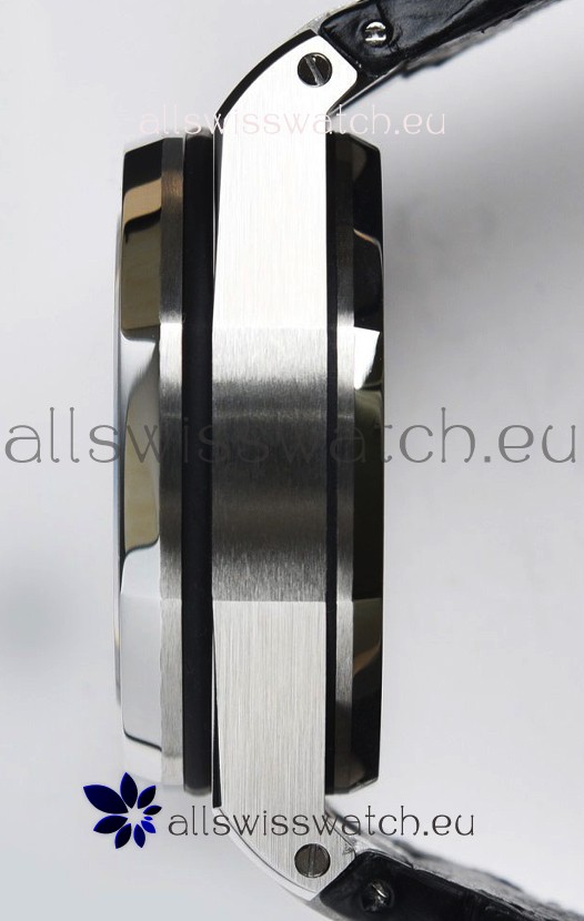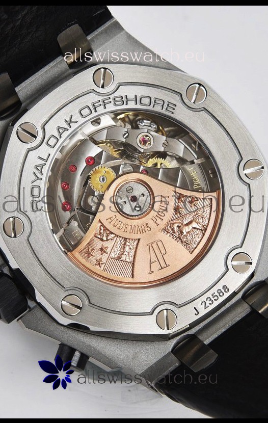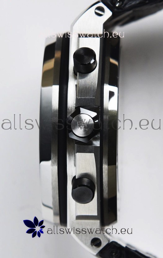 Machinery Layout exactly like Audemars Piguet 3126 Calibre Movement used in Authentic Audemars Piguet Offshore Watches built on Genuine Swiss 7753 Movement architecture with Functional stopwatch feature like the authentic with Seconds hand running at the 12 o clock Sub Dial