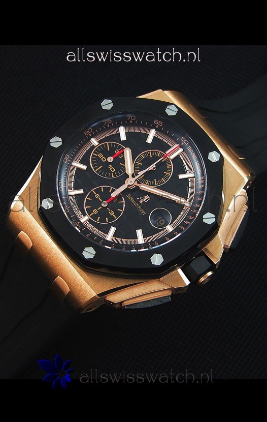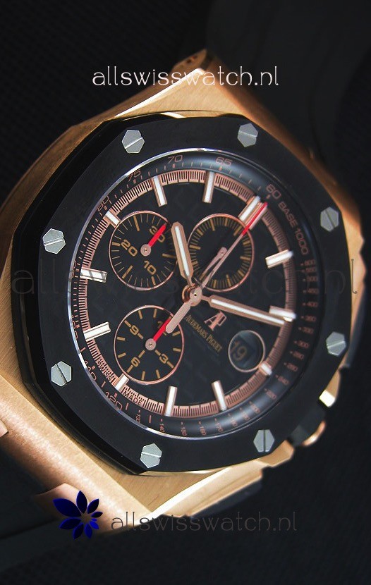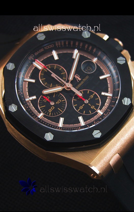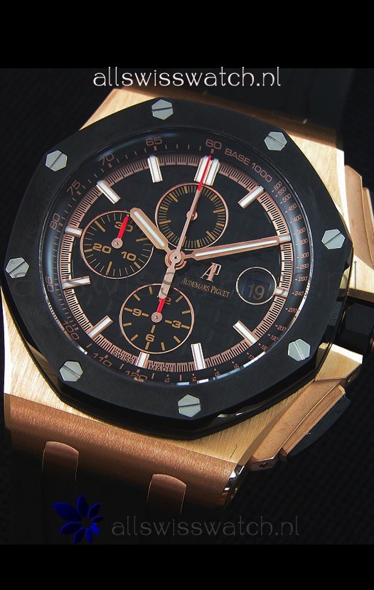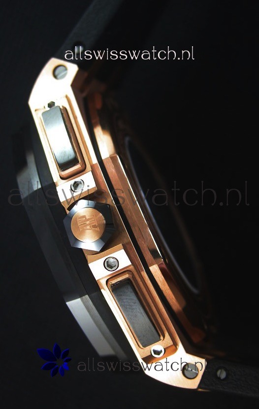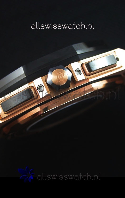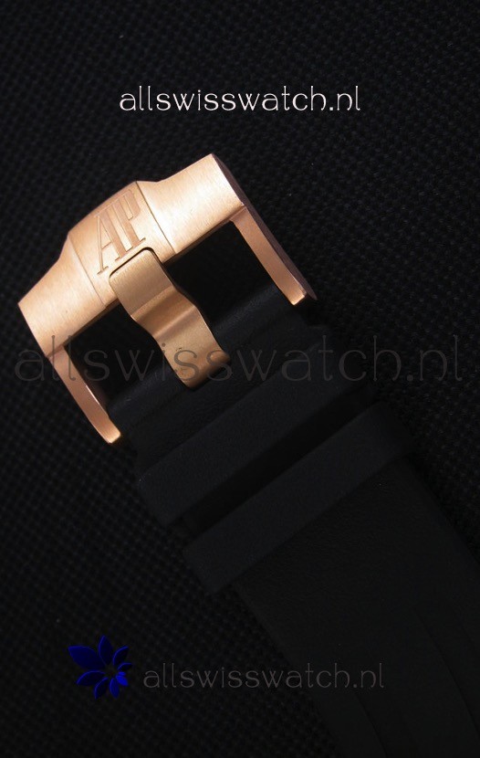 Black Rubber Strap with Pink Gold Buckle complete with Audemars Piguet Markings and Engravings