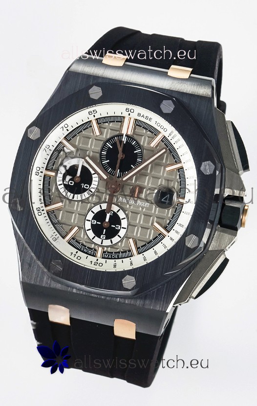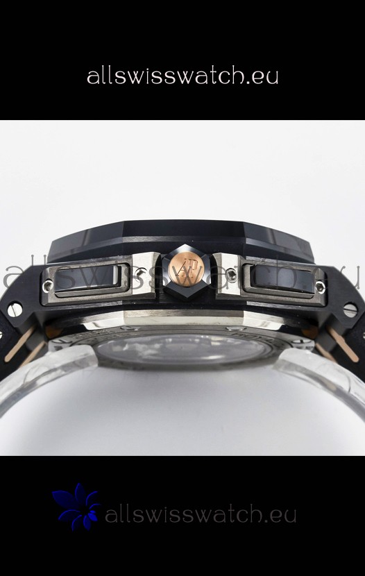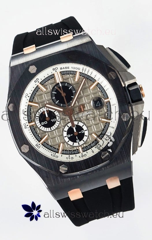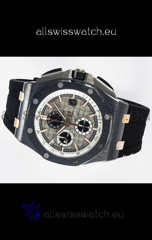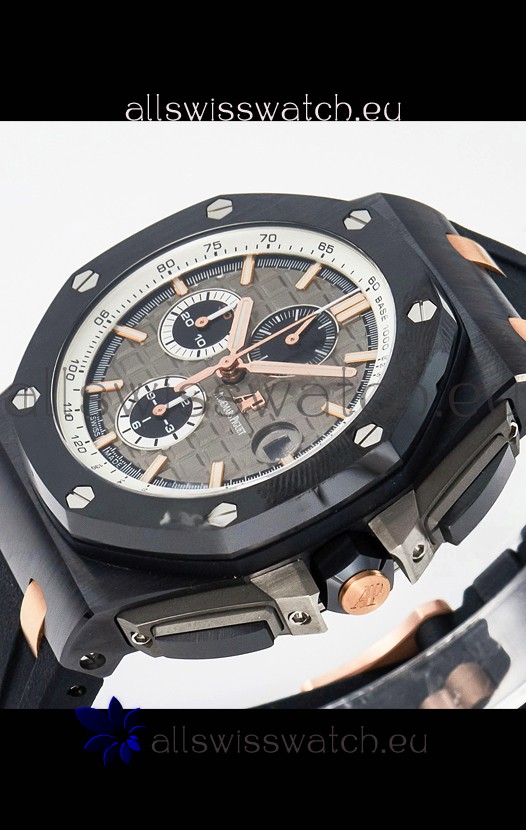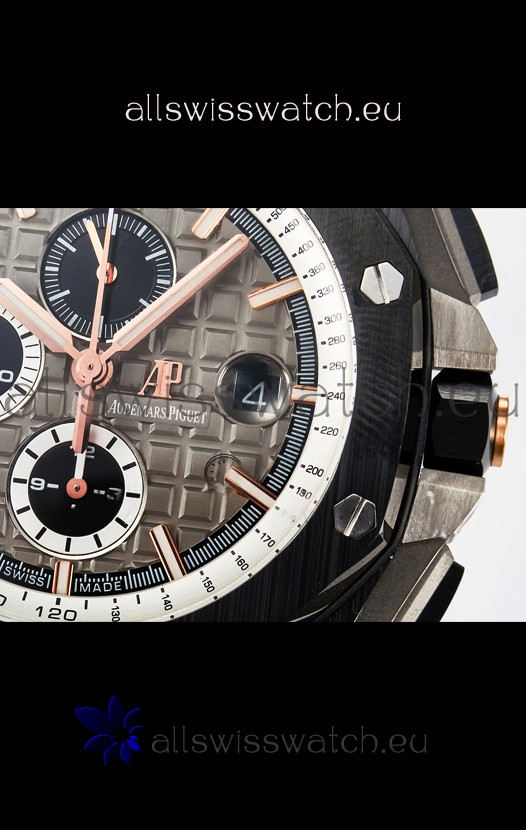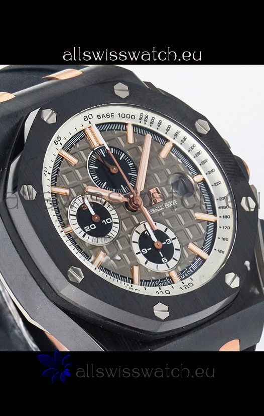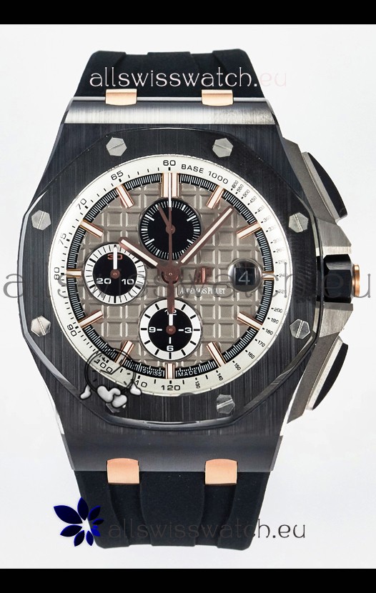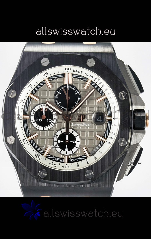 Machinery Layout exactly like Audemars Piguet 3126 Calibre Movement used in Authentic Audemars Piguet Offshore Watches built on Genuine Swiss 7753 Movement architecture with Functional stopwatch feature like the authentic with Seconds hand running at the 12 o clock Sub Dial