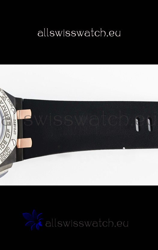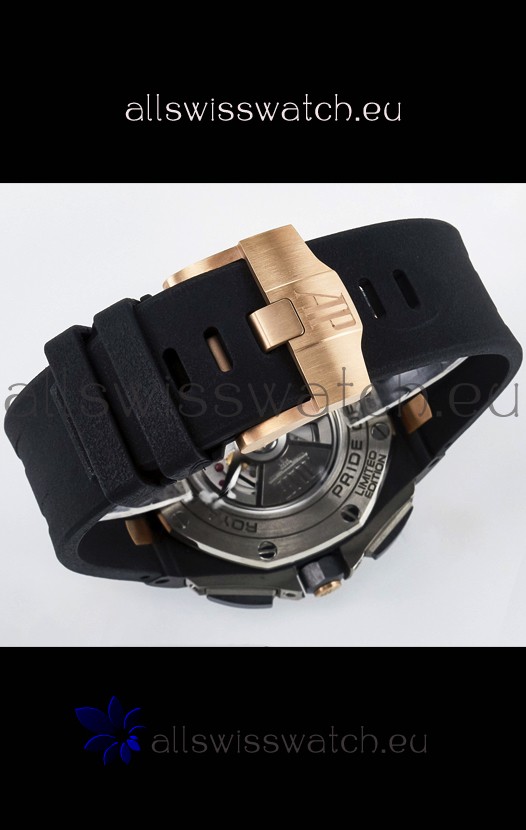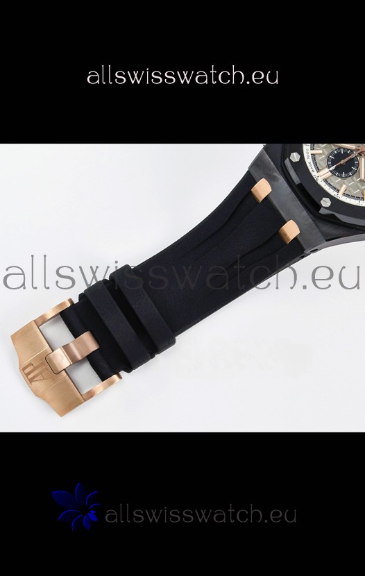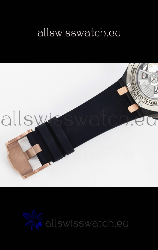 Genuine High Quality Black Rubber Strap with Audemars Piguet Tang Buckle Complete with all AP Markings and Engravings