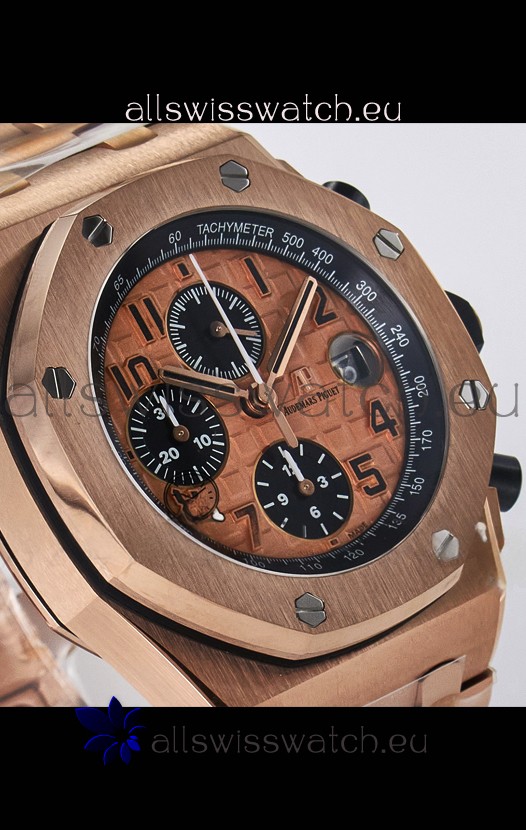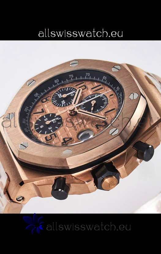 You're reviewing: Audemars Piguet Royal Oak Offshore Rose Gold BRICK Dial 1:1 Super Clone Replica Watch - 904L Steel