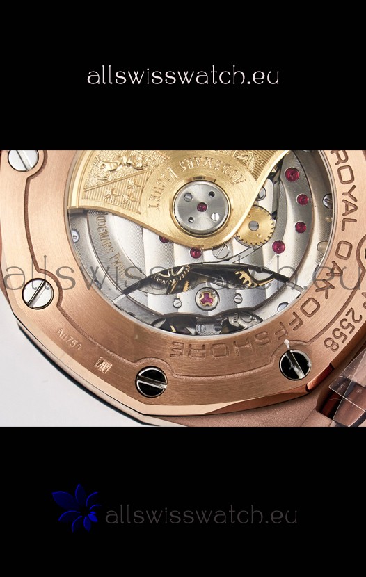 18K Rose Gold Plating on 904L Solid Stainless Steel Case and Bezel with Open Case back