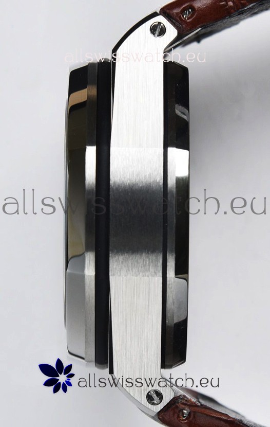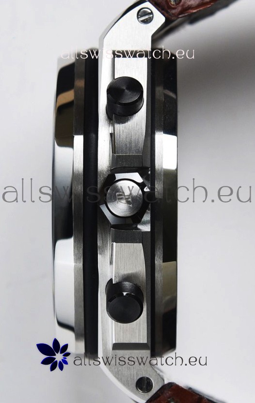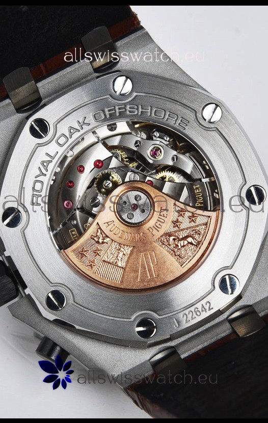 Machinery Layout exactly like Audemars Piguet 3126 Calibre Movement used in Authentic Audemars Piguet Offshore Watches built on Genuine Swiss 7753 Movement architecture with Functional stopwatch feature like the authentic with Seconds hand running at the 12 o clock Sub Dial