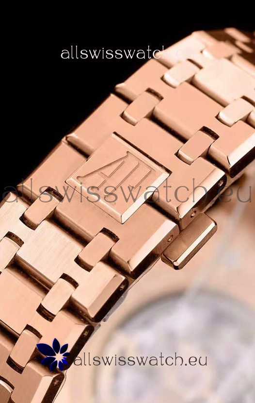 18K Rose Gold Plating on 904L Stainless Strap linked with Screws complete with AP Markings and Engravings