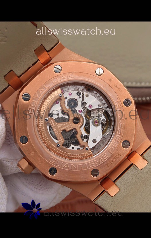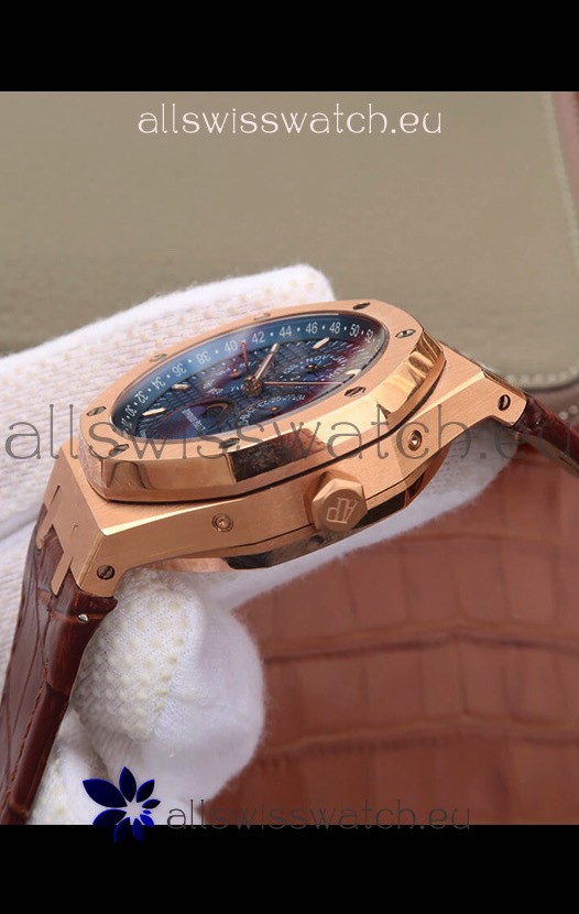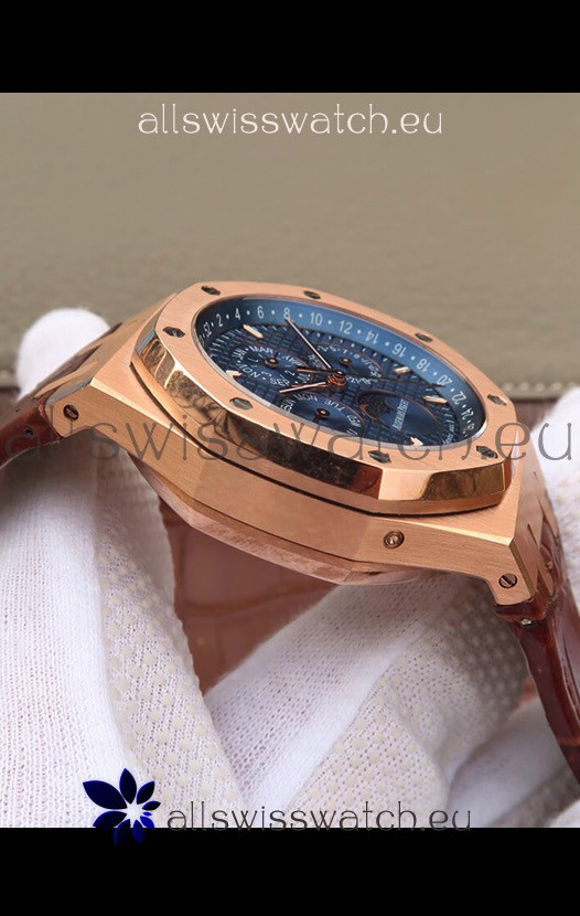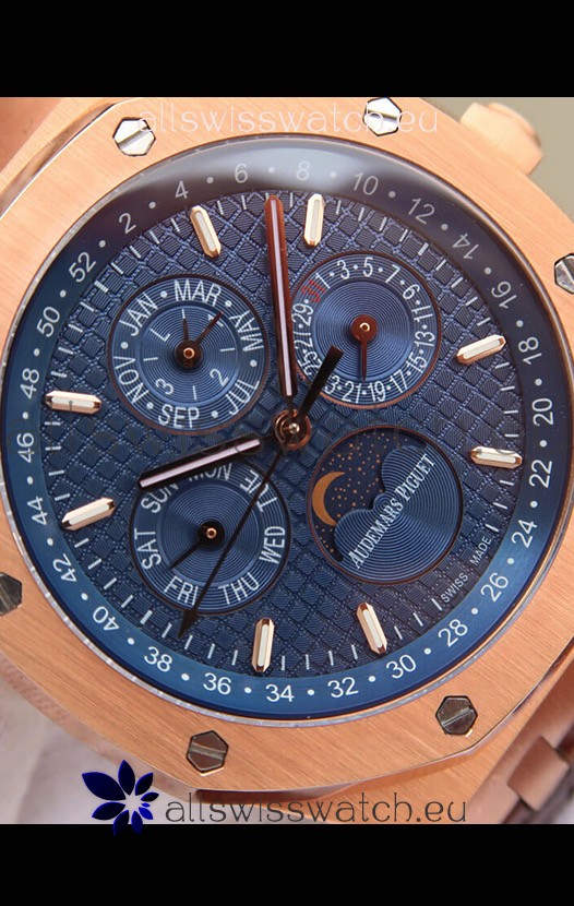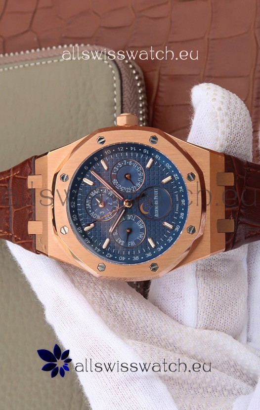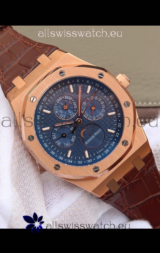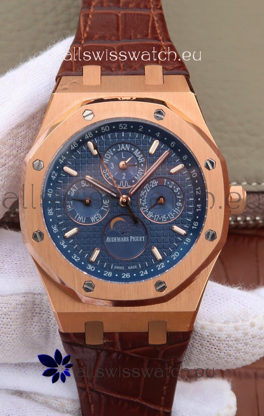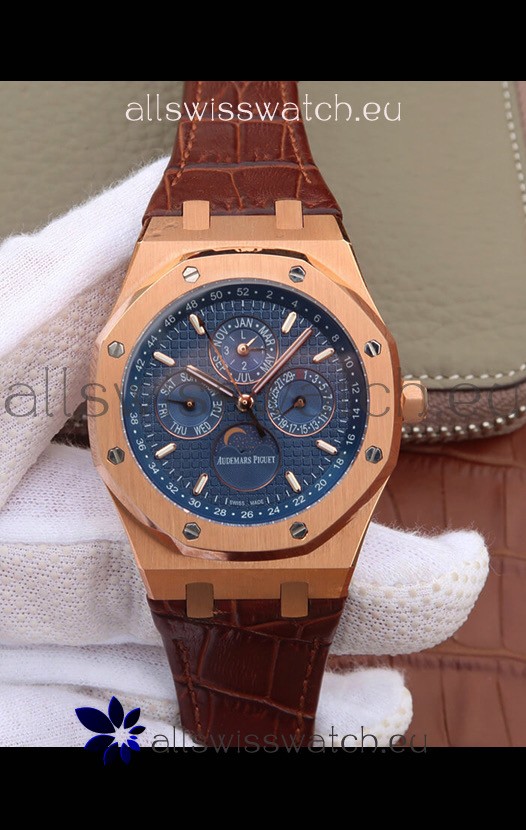 Audemars Piguet Royal Oak Perpetual Calendar Swiss Replica Rose Gold Casing Watch in Blue Dial
