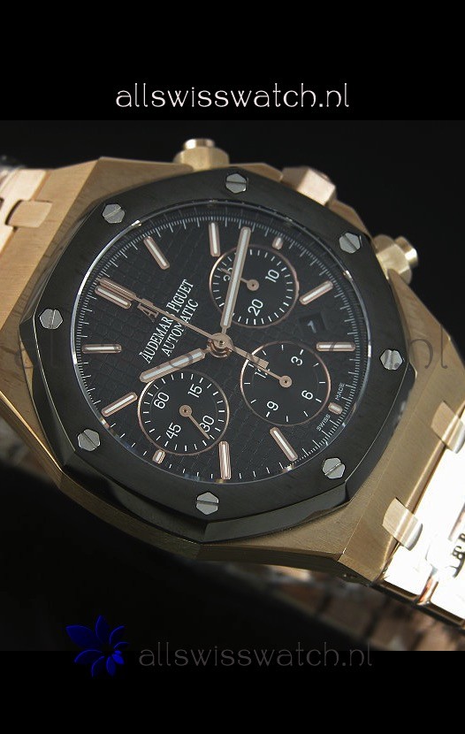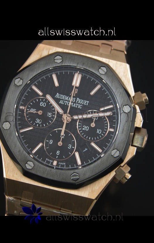 Audemars Piguet Royal Oak Rose Gold in Black Textured Ceramic Dial - 1:1 Mirror Replica