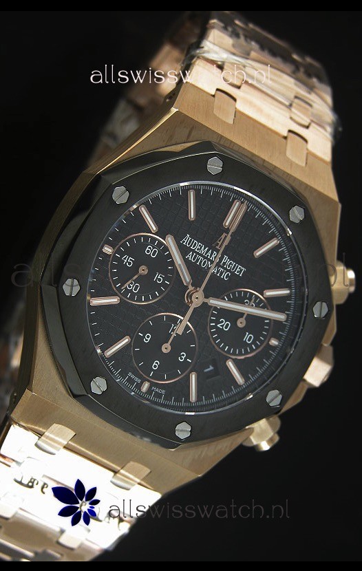 You're reviewing: Audemars Piguet Royal Oak Rose Gold in Black Textured Ceramic Dial - 1:1 Mirror Replica
