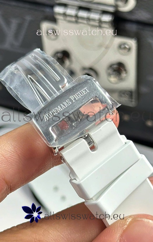 Genuine White Rubber Strap with AP Folding Clasp complete with AP Markings and Engravings