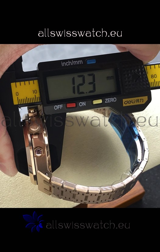 Rose Gold Plating on 904L Stainless Steel Strap completed with AP Markings and Engravings as per the originals and AP Folding Clasp