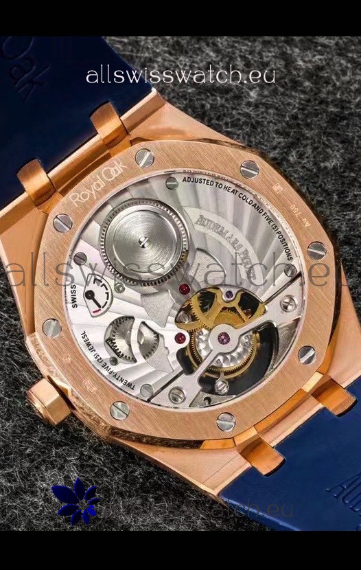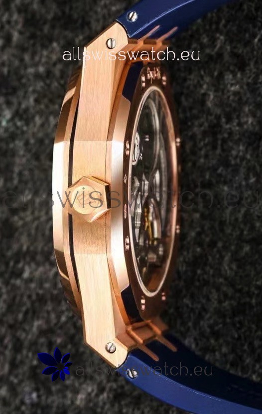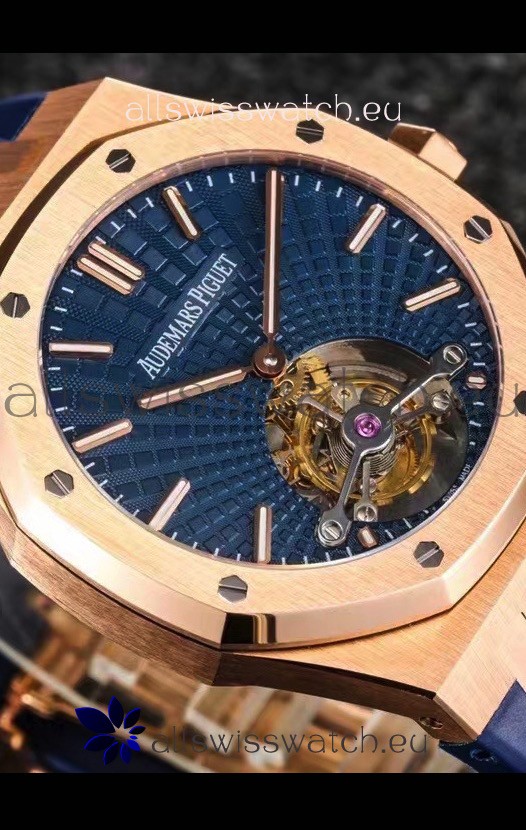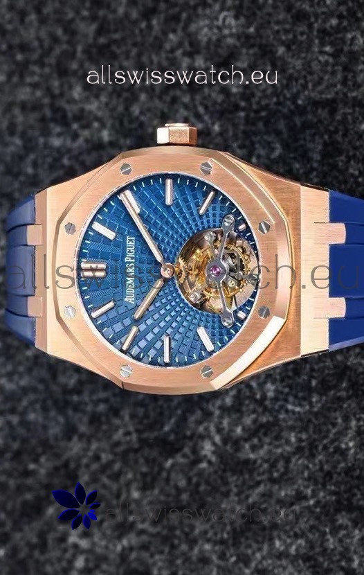 Audemars Piguet Royal Oak Tourbillon 41mm Blue Dial in 904L Rose Gold Case Rubber Strap