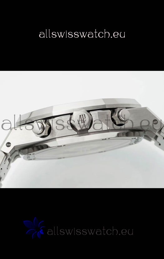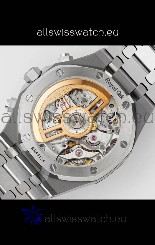 Machinery Layout exactly like Audemars Piguet 4401 Calibre Movement used in Authentic Audemars Piguet Offshore Watches. Built on Genuine Swiss 7753 Movement architecture with Functional stopwatch feature like the authentic with Seconds hand running at the 12 o clock Sub Dial
