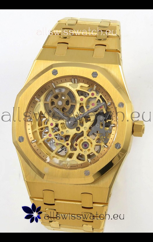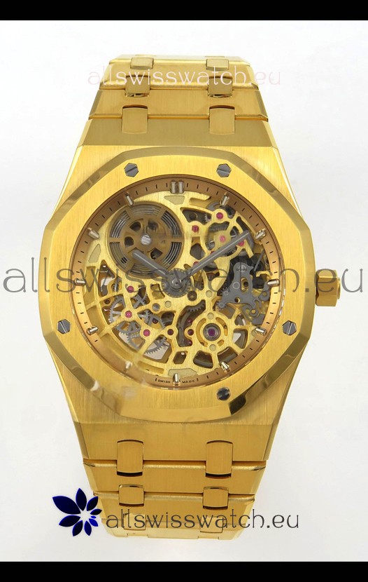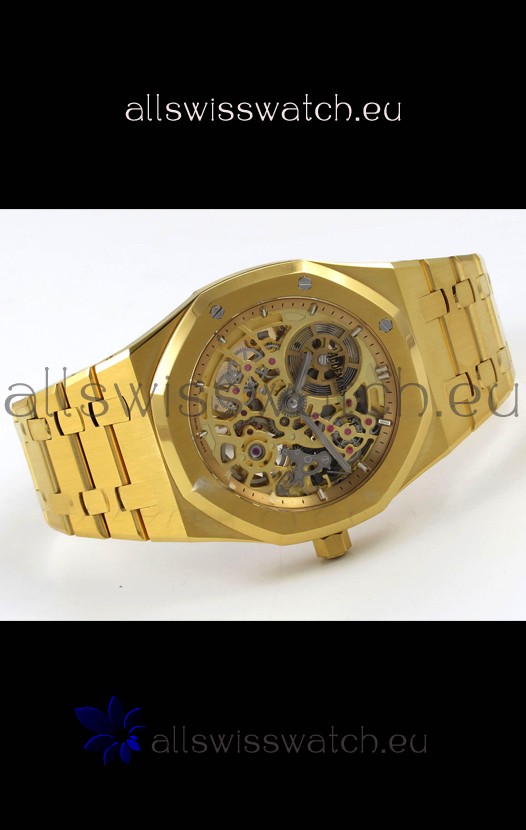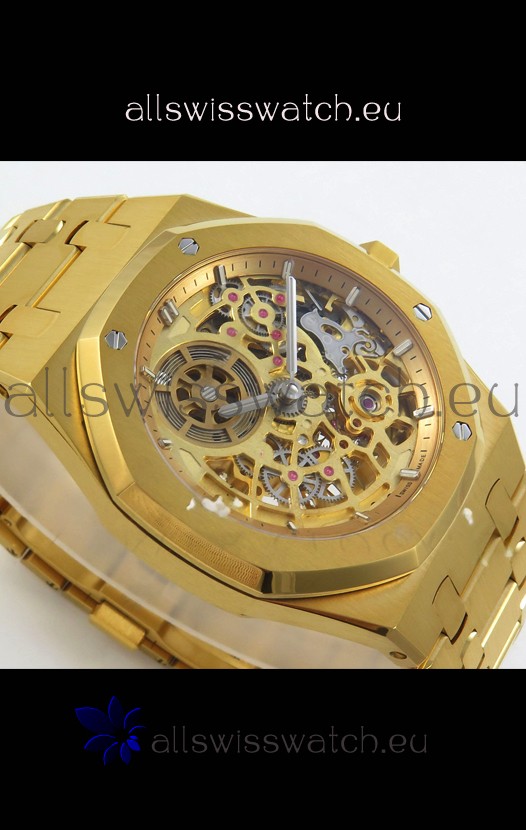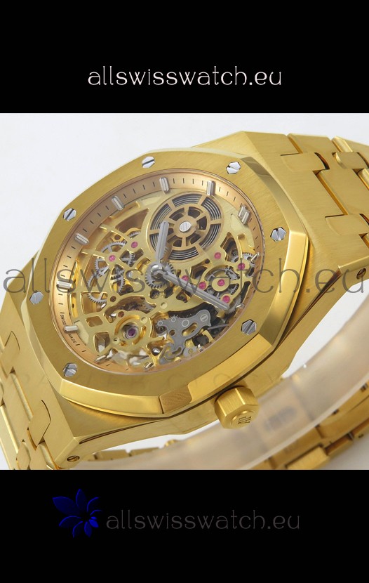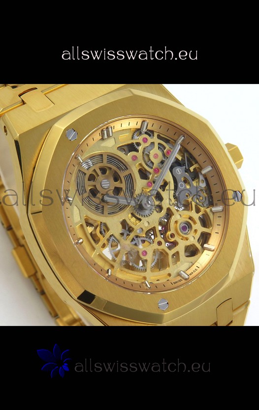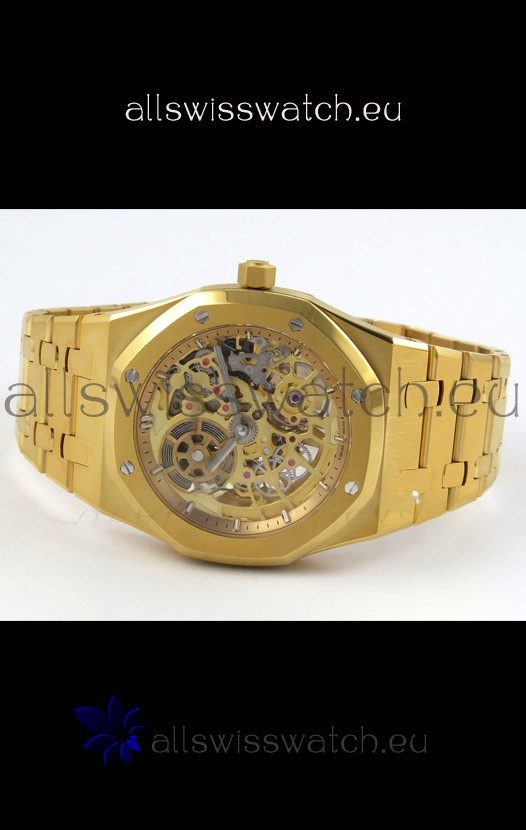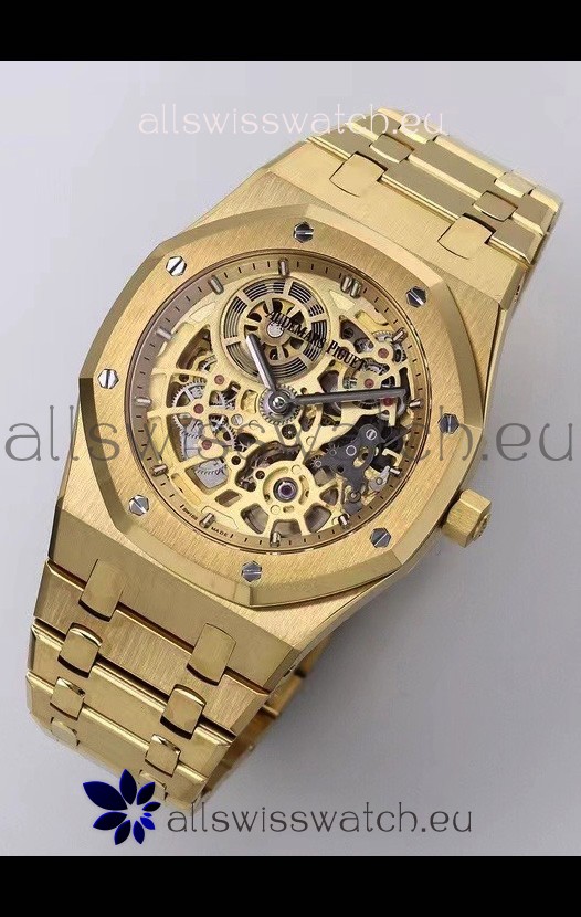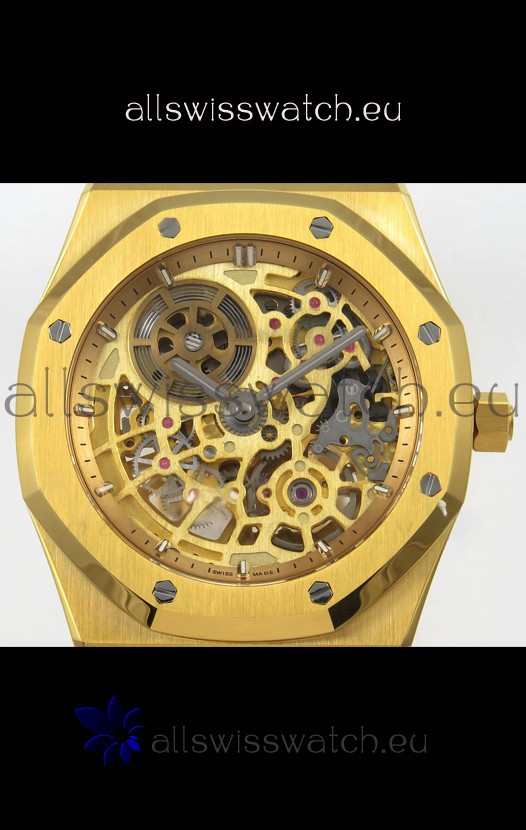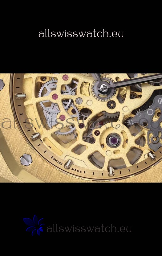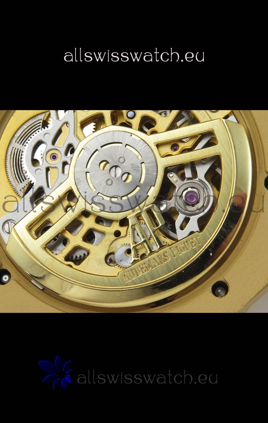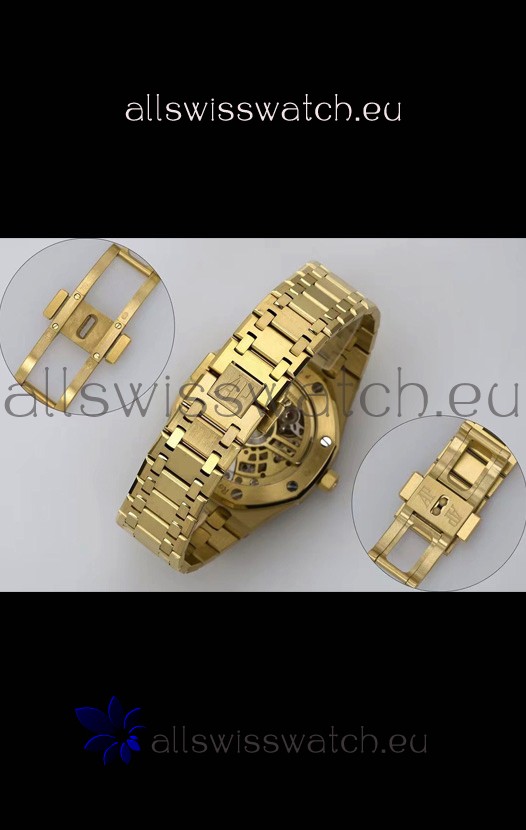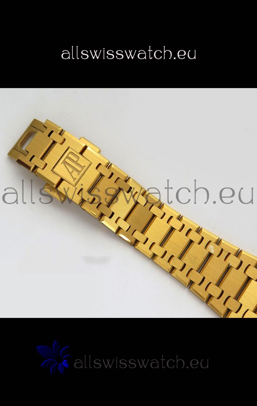 18K Yellow Gold Plating on 904L Stainless Steel Strap linked with Screws complete with AP Markings and Engravings