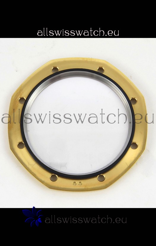 18K Yellow Gold Plating on 904L Stainless Steel Case with complete markings/engravings as per the originals.