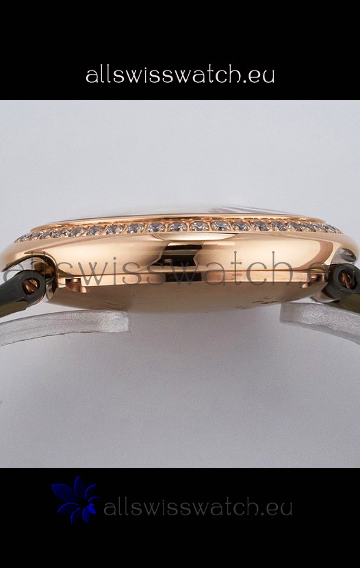 18K Rose Gold Plating on 904L Stainless Steel Case with solid Case back complete with Cartier Markings and Engravings