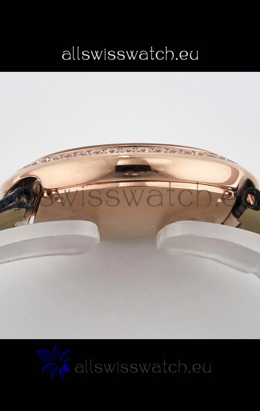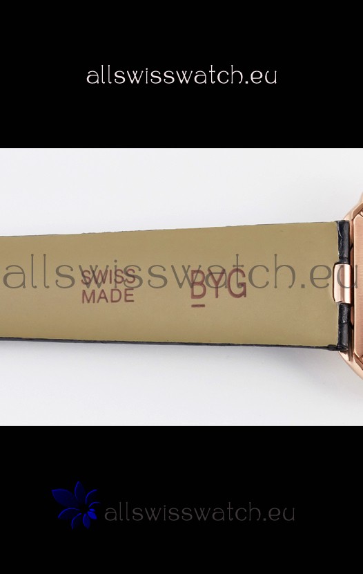 18K Rose Gold Plating on 904L Stainless Steel Case with solid Case back complete with Cartier Markings and Engravings